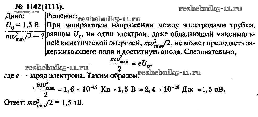 Физика за 10-11 класс Рымкевич Задачник УМК Дрофа задача 1142