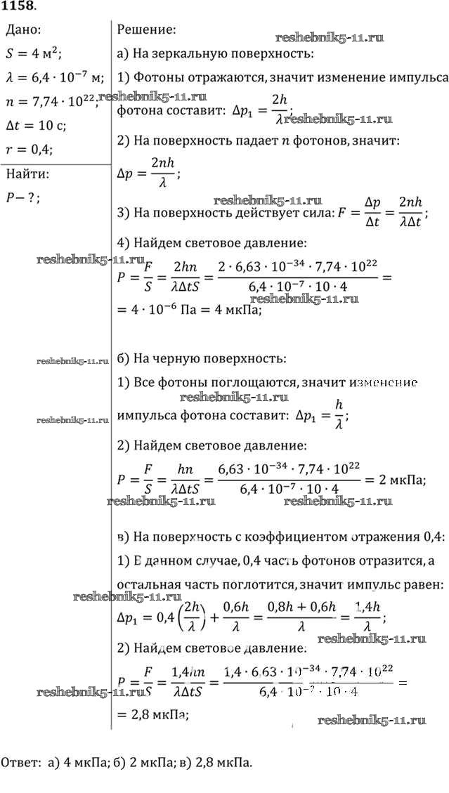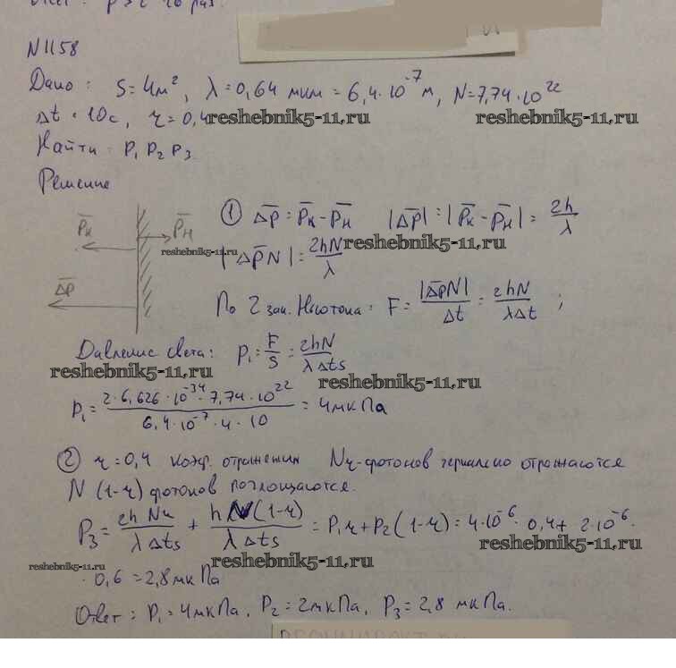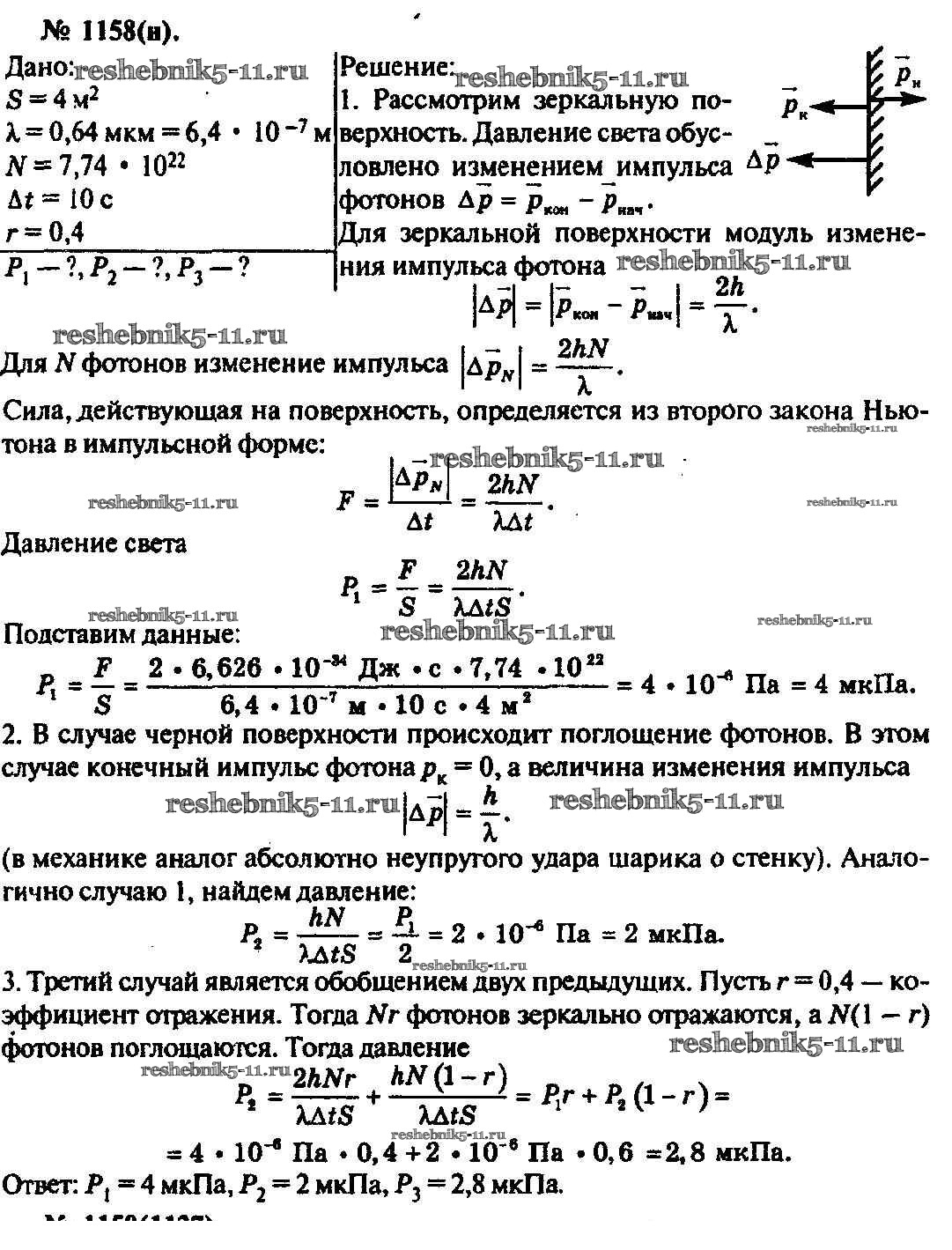 Готовая домашняя работа с ответами по Физике за 10, 11 класс Рымкевич Задачник УМК Дрофа 2013 ФГОС - Задачи 1158
