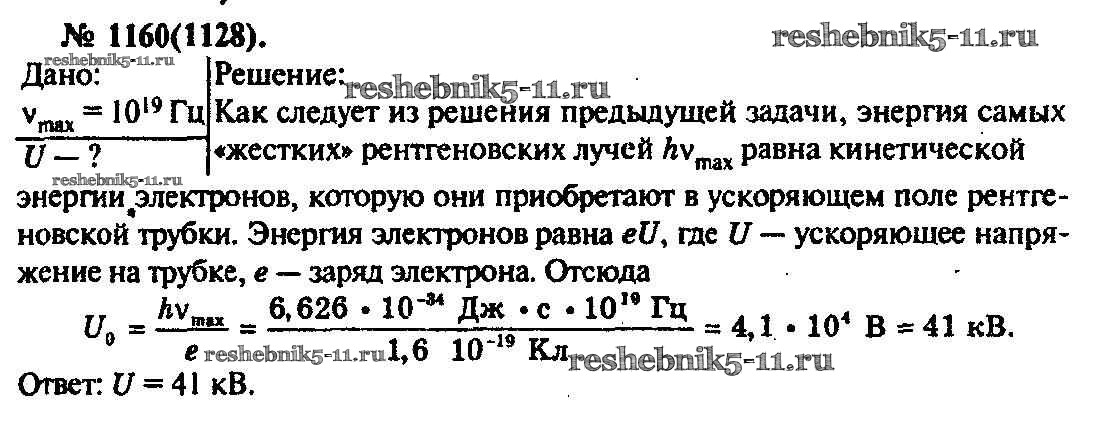 Физика за 10-11 класс Рымкевич Задачник УМК Дрофа задача 1160
