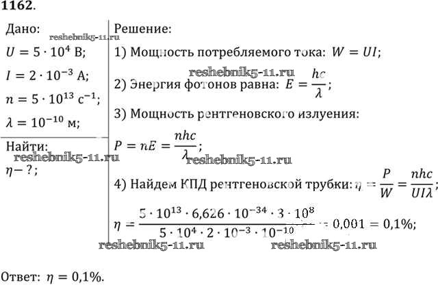 Готовая домашняя работа с ответами по Физике за 10, 11 класс Рымкевич Задачник УМК Дрофа 2013 ФГОС - Задачи 1162