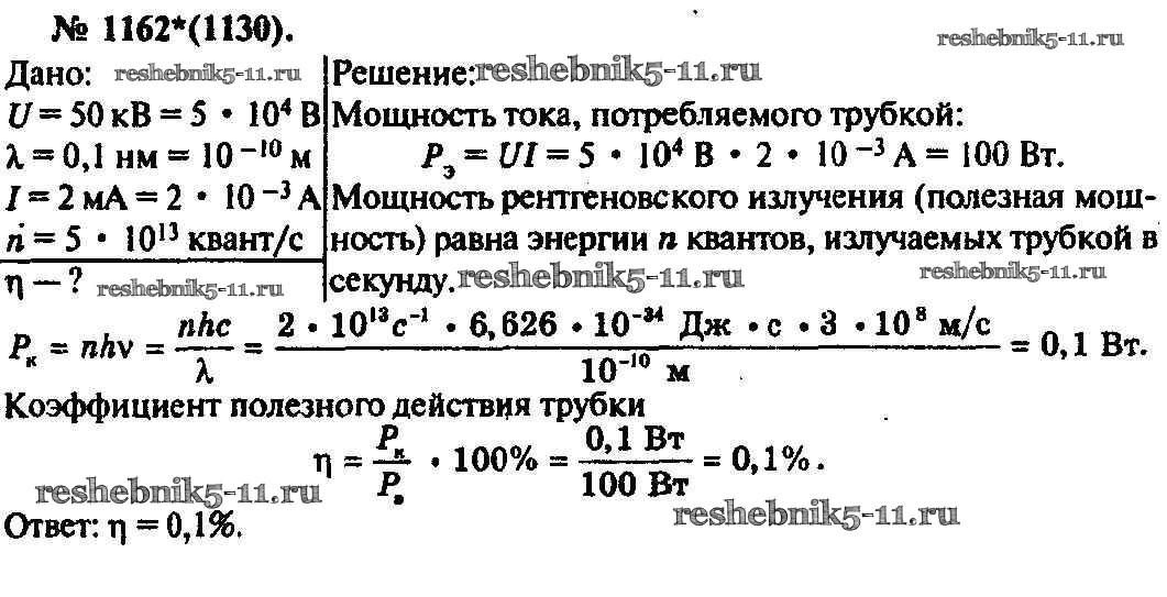 Физика за 10-11 класс Рымкевич Задачник УМК Дрофа задача 1162