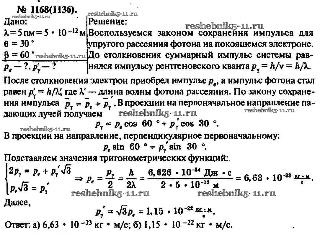 Готовая домашняя работа с ответами по Физике за 10, 11 класс Рымкевич Задачник УМК Дрофа 2013 ФГОС - Задачи 1168