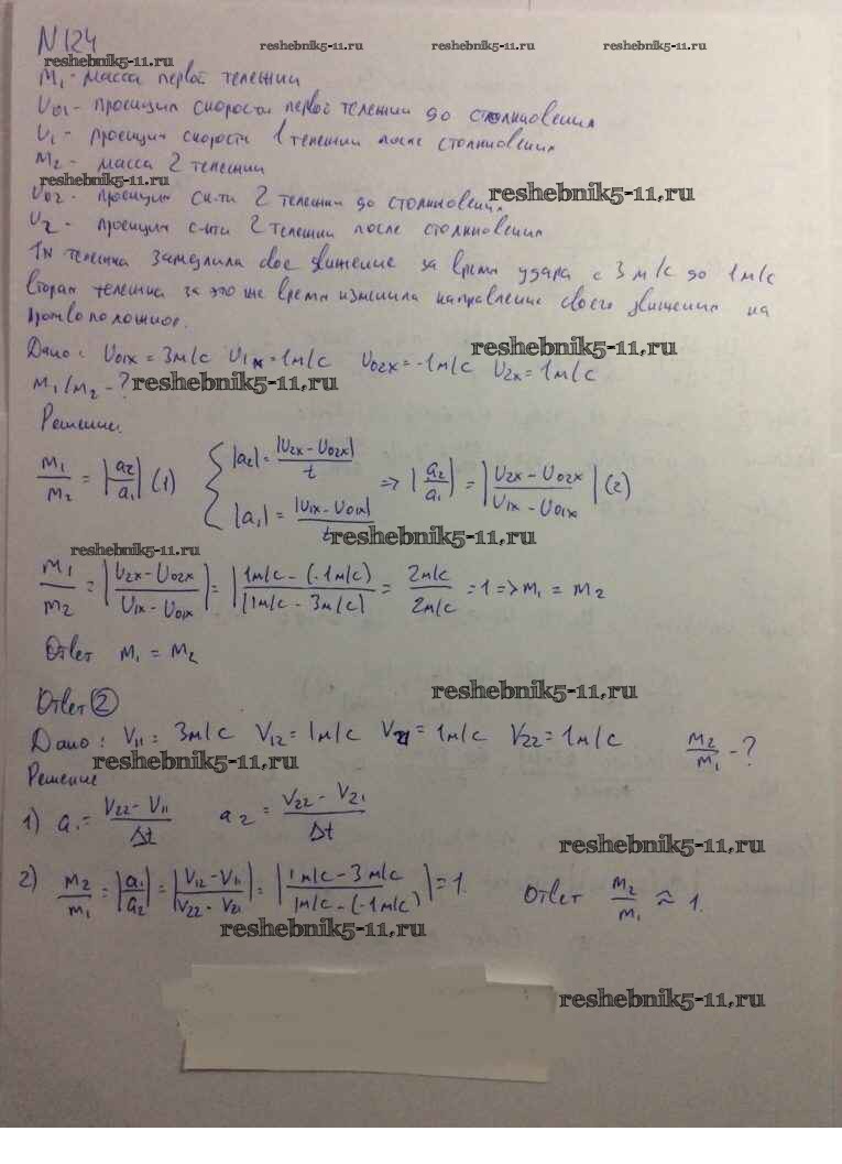 Готовая домашняя работа с ответами по Физике за 10, 11 класс Рымкевич Задачник УМК Дрофа 2013 ФГОС - Задачи 124
