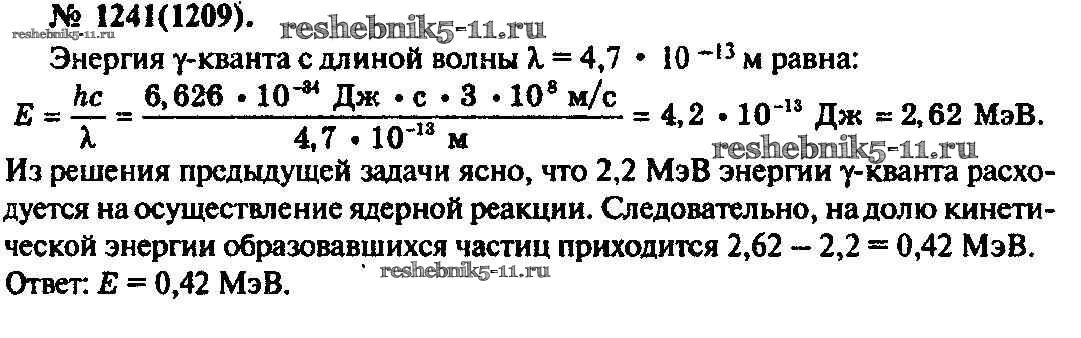 Готовая домашняя работа с ответами по Физике за 10, 11 класс Рымкевич Задачник УМК Дрофа 2013 ФГОС - Задачи 1241