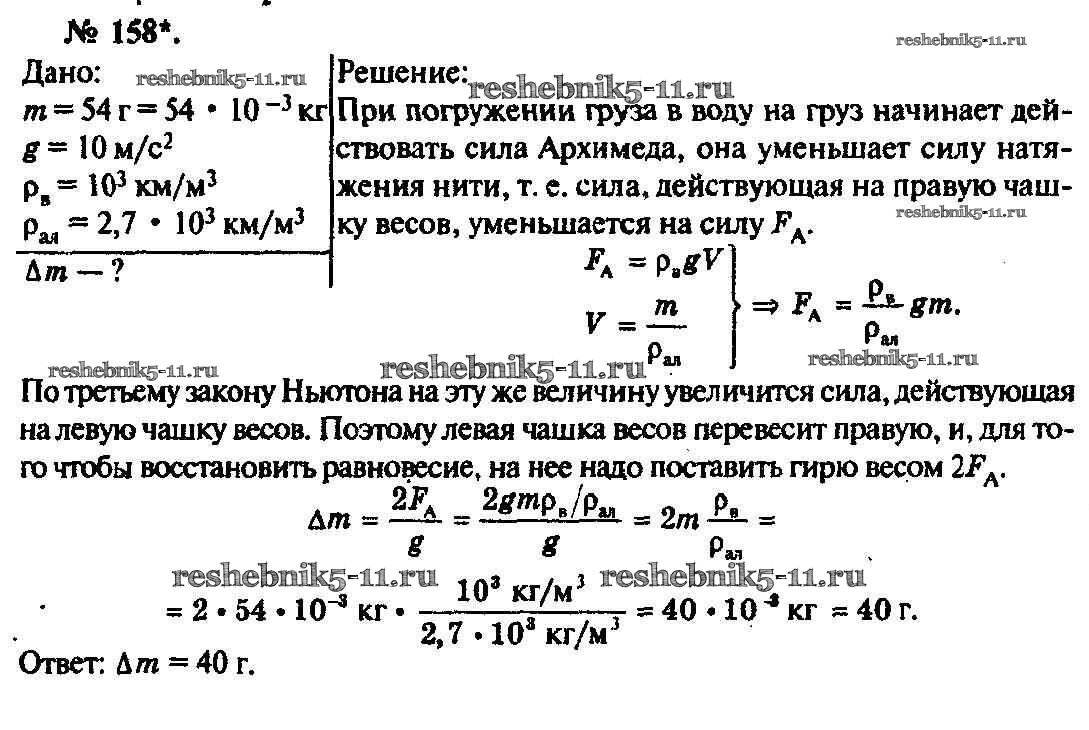 Готовая домашняя работа с ответами по Физике за 10, 11 класс Рымкевич Задачник УМК Дрофа 2013 ФГОС - Задачи 158