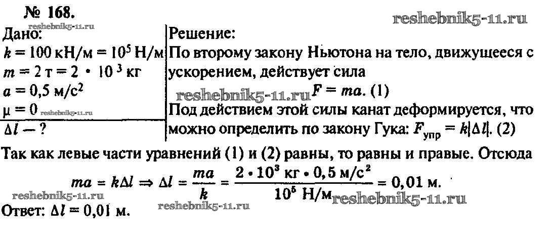 Готовая домашняя работа с ответами по Физике за 10, 11 класс Рымкевич Задачник УМК Дрофа 2013 ФГОС - Задачи 168