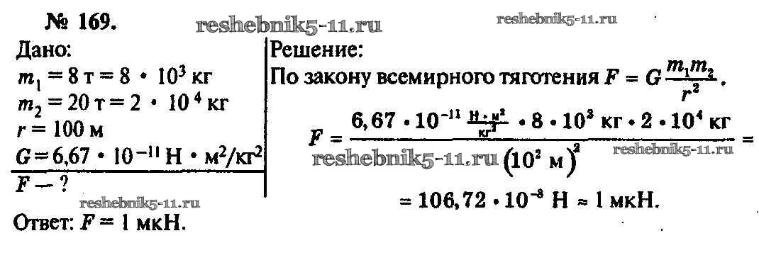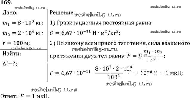 Готовая домашняя работа с ответами по Физике за 10, 11 класс Рымкевич Задачник УМК Дрофа 2013 ФГОС - Задачи 169