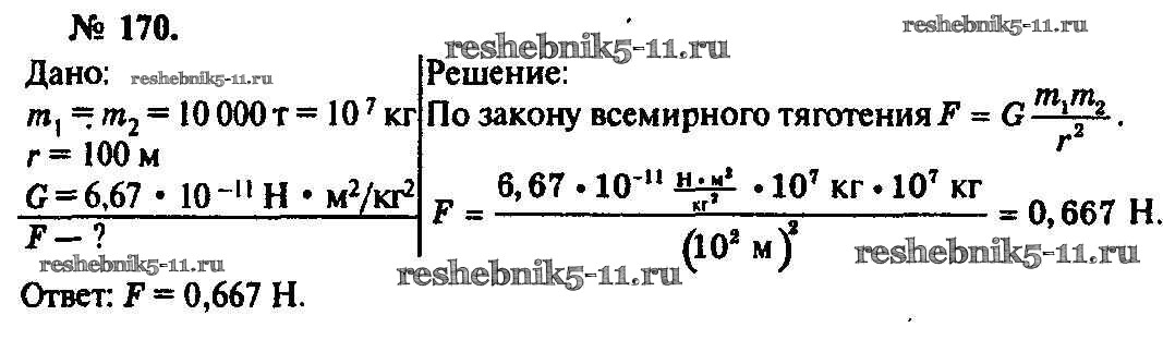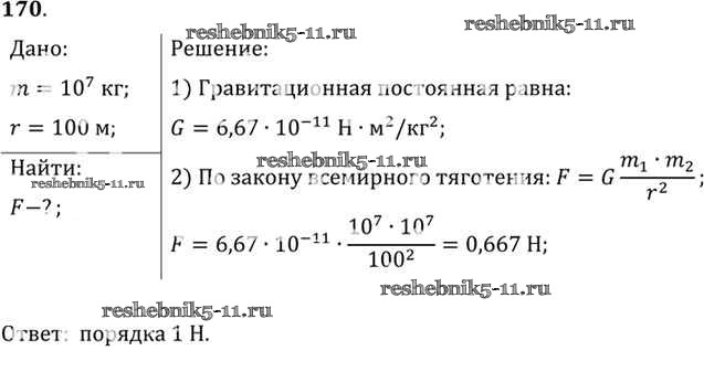 Готовая домашняя работа с ответами по Физике за 10, 11 класс Рымкевич Задачник УМК Дрофа 2013 ФГОС - Задачи 170