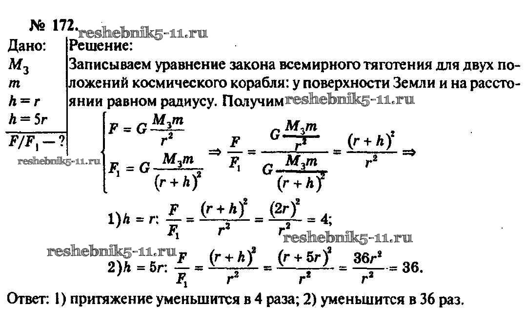 Готовая домашняя работа с ответами по Физике за 10, 11 класс Рымкевич Задачник УМК Дрофа 2013 ФГОС - Задачи 172
