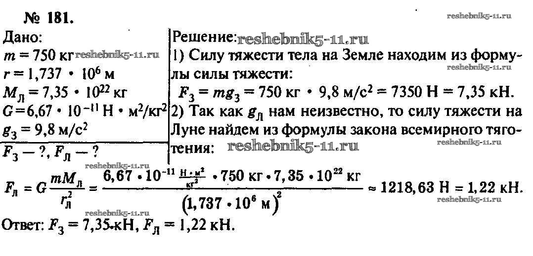 Готовая домашняя работа с ответами по Физике за 10, 11 класс Рымкевич Задачник УМК Дрофа 2013 ФГОС - Задачи 181