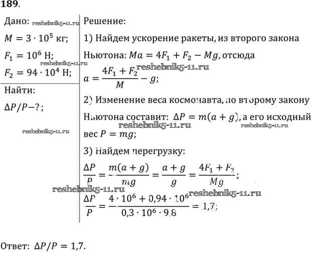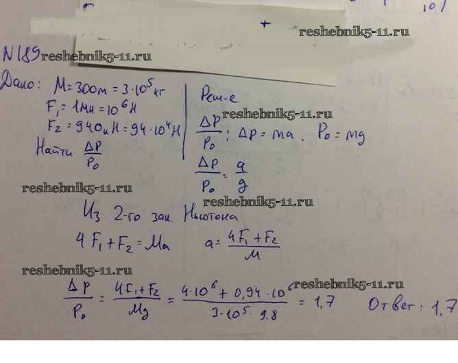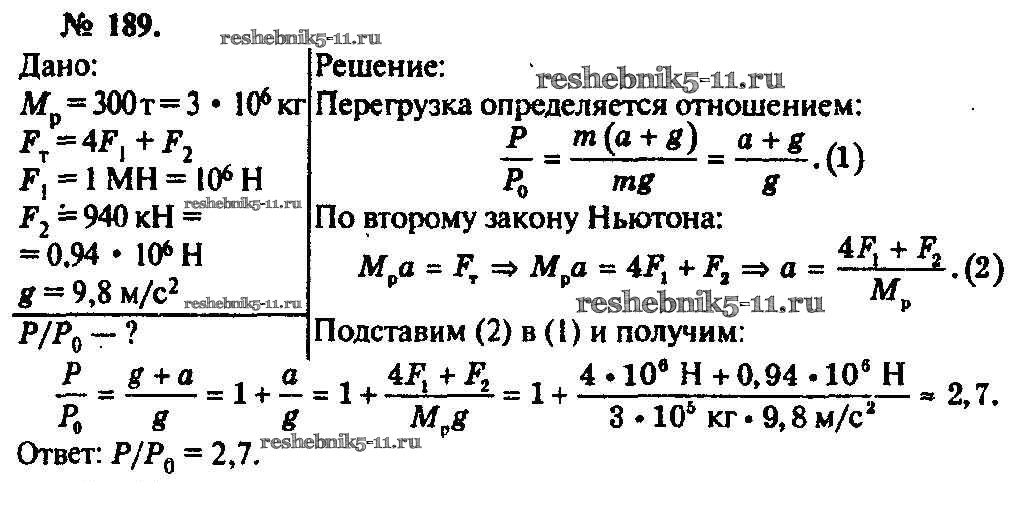 Готовая домашняя работа с ответами по Физике за 10, 11 класс Рымкевич Задачник УМК Дрофа 2013 ФГОС - Задачи 189