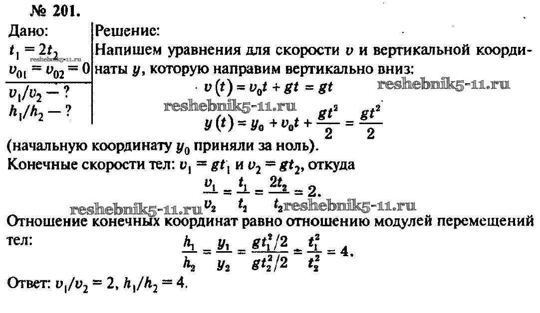 Готовая домашняя работа с ответами по Физике за 10, 11 класс Рымкевич Задачник УМК Дрофа 2013 ФГОС - Задачи 201