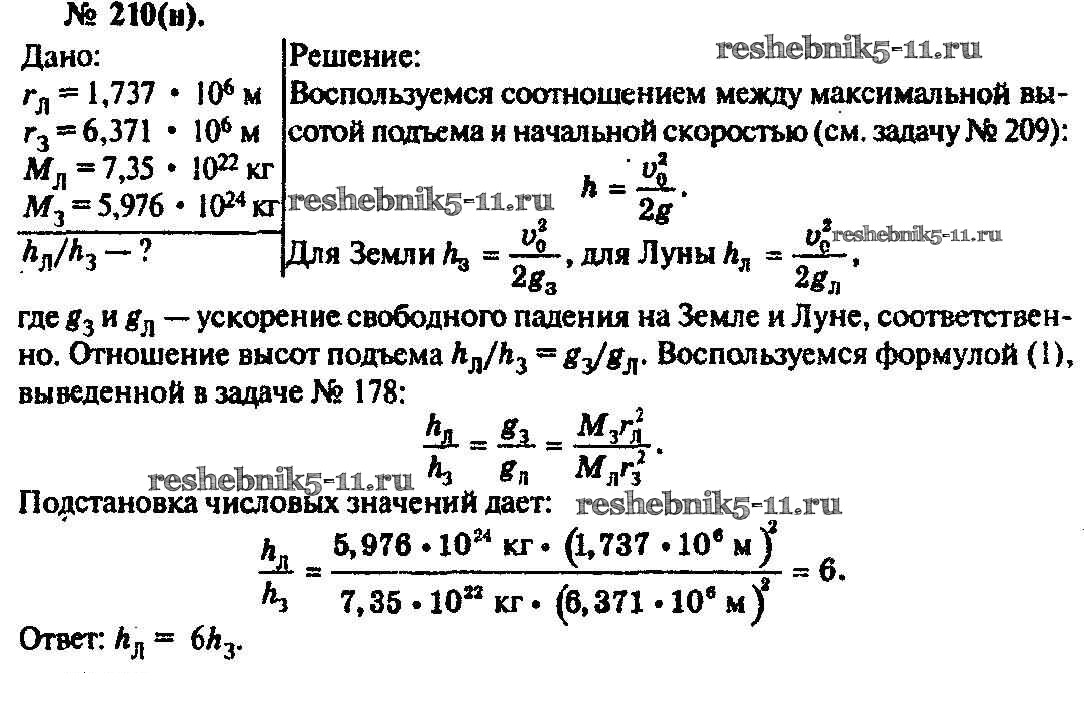 Готовая домашняя работа с ответами по Физике за 10, 11 класс Рымкевич Задачник УМК Дрофа 2013 ФГОС - Задачи 210