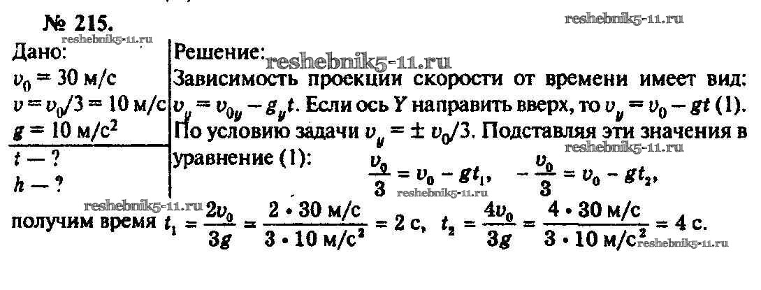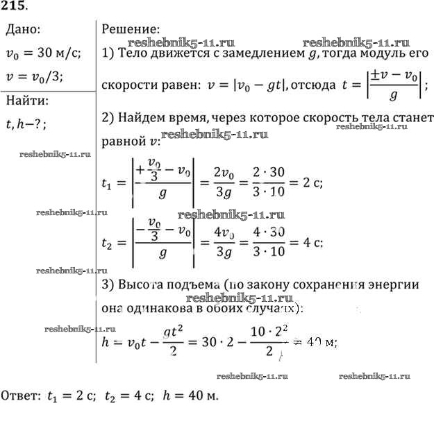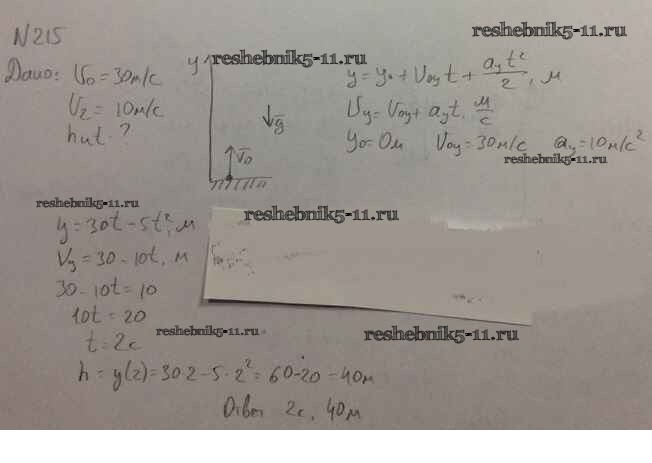 Готовая домашняя работа с ответами по Физике за 10, 11 класс Рымкевич Задачник УМК Дрофа 2013 ФГОС - Задачи 215