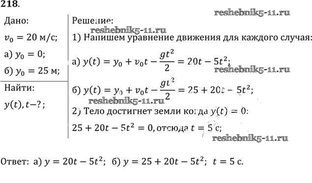 Готовая домашняя работа с ответами по Физике за 10, 11 класс Рымкевич Задачник УМК Дрофа 2013 ФГОС - Задачи 218