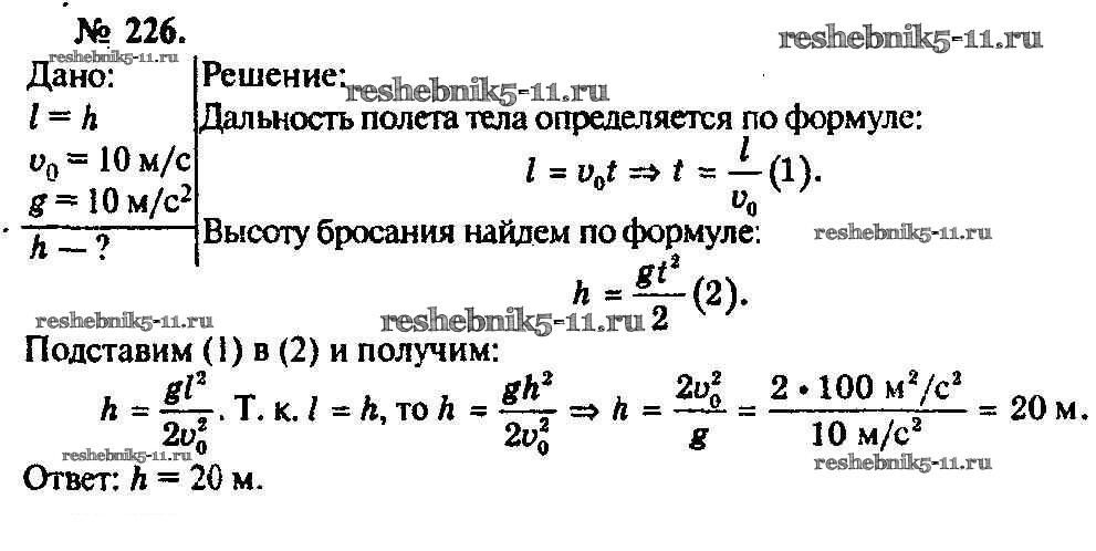 Готовая домашняя работа с ответами по Физике за 10, 11 класс Рымкевич Задачник УМК Дрофа 2013 ФГОС - Задачи 226