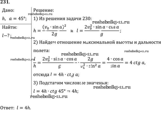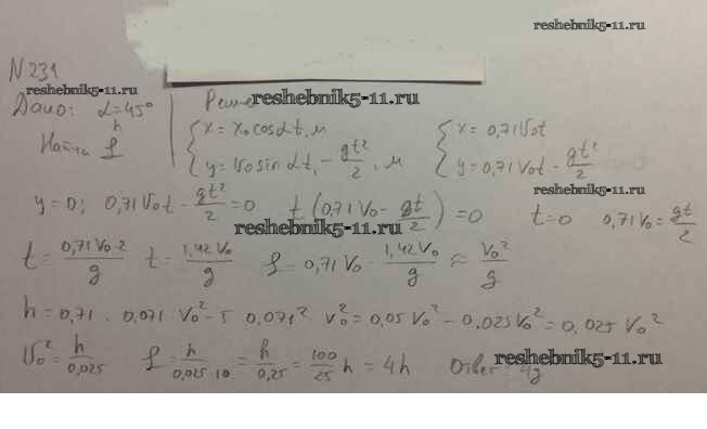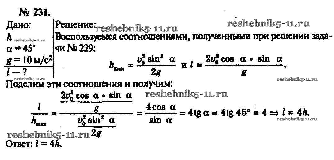 Готовая домашняя работа с ответами по Физике за 10, 11 класс Рымкевич Задачник УМК Дрофа 2013 ФГОС - Задачи 231