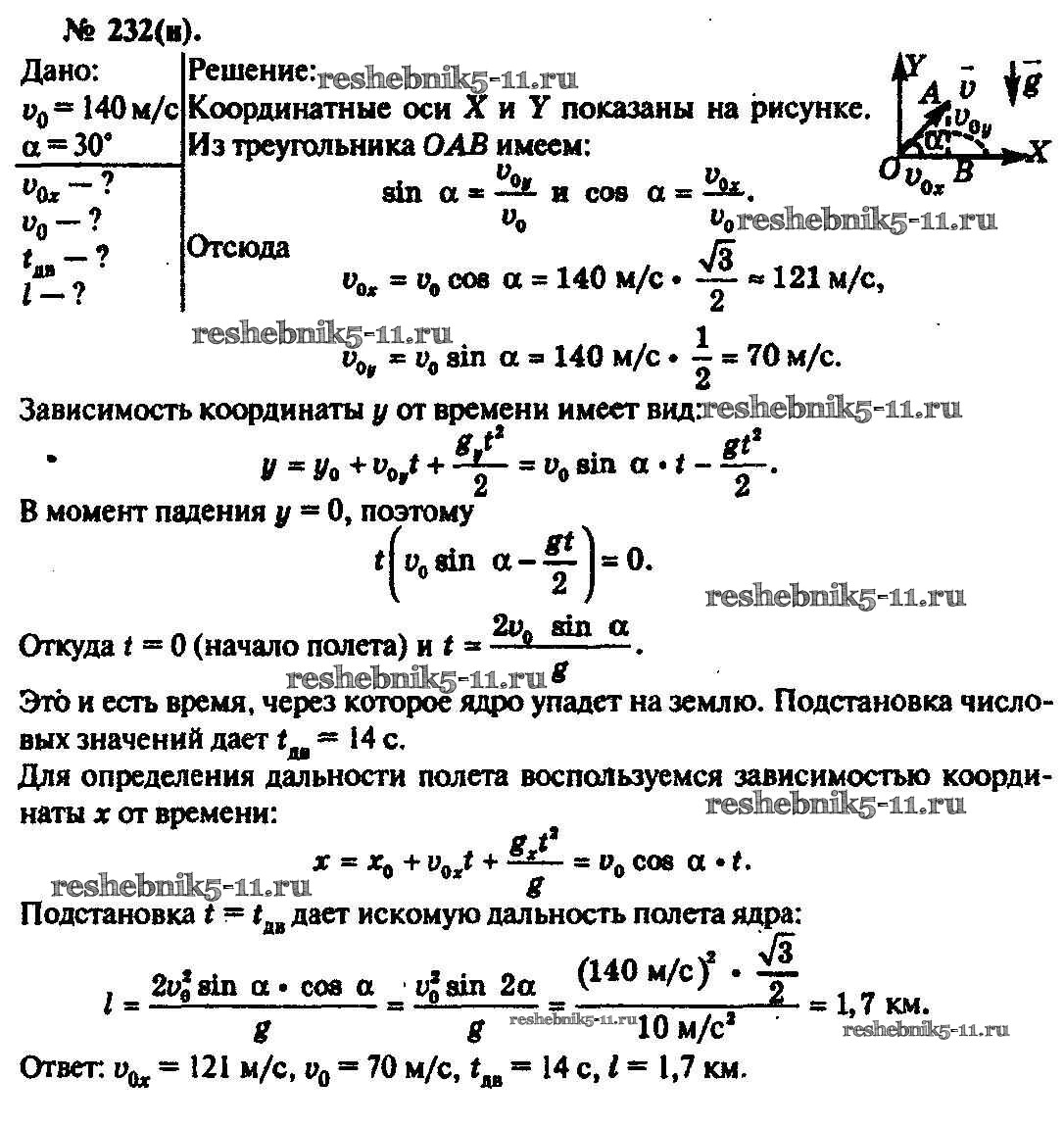 Готовая домашняя работа с ответами по Физике за 10, 11 класс Рымкевич Задачник УМК Дрофа 2013 ФГОС - Задачи 232
