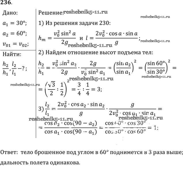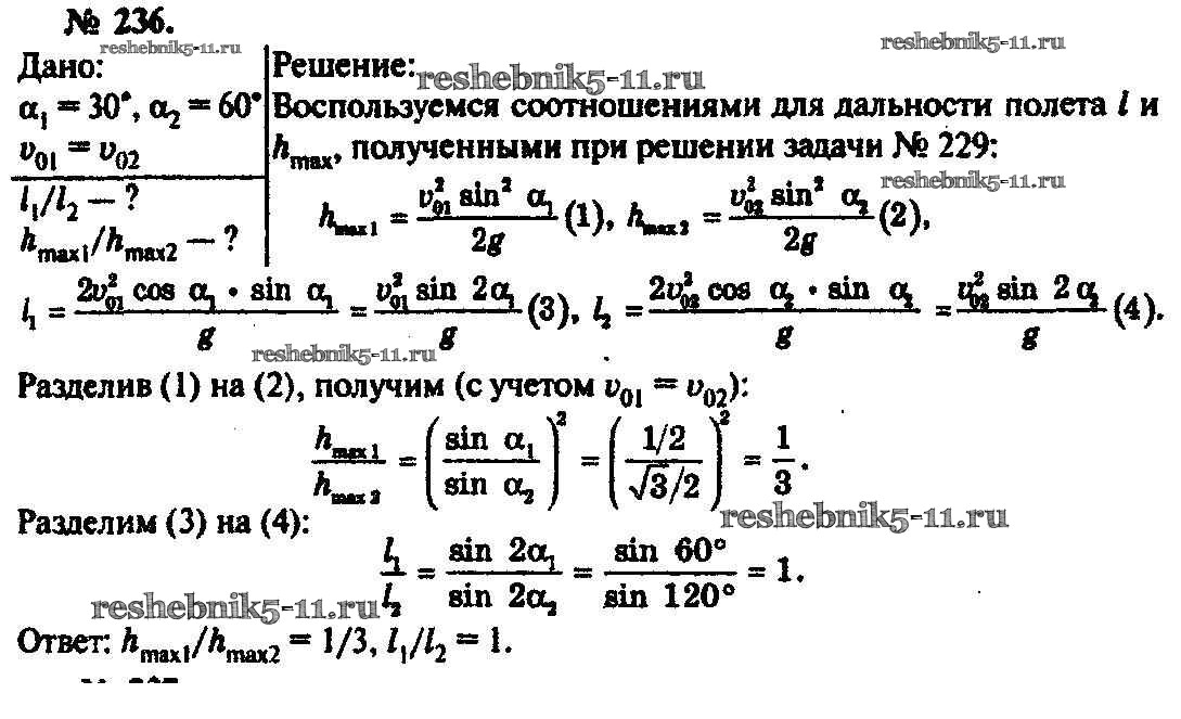 Готовая домашняя работа с ответами по Физике за 10, 11 класс Рымкевич Задачник УМК Дрофа 2013 ФГОС - Задачи 236