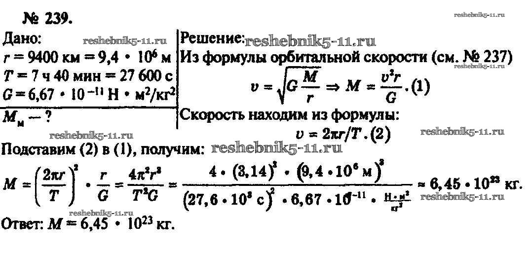 Готовая домашняя работа с ответами по Физике за 10, 11 класс Рымкевич Задачник УМК Дрофа 2013 ФГОС - Задачи 239