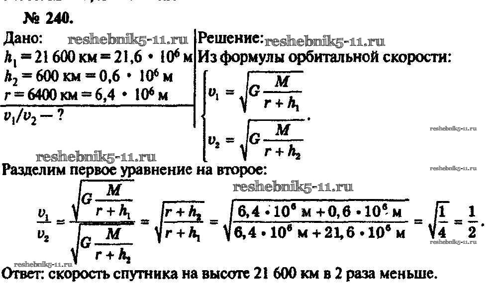 Готовая домашняя работа с ответами по Физике за 10, 11 класс Рымкевич Задачник УМК Дрофа 2013 ФГОС - Задачи 240