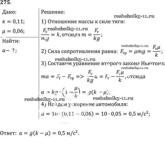 Готовая домашняя работа с ответами по Физике за 10, 11 класс Рымкевич Задачник УМК Дрофа 2013 ФГОС - Задачи 275