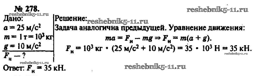 Готовая домашняя работа с ответами по Физике за 10, 11 класс Рымкевич Задачник УМК Дрофа 2013 ФГОС - Задачи 278