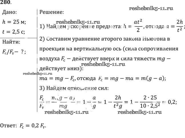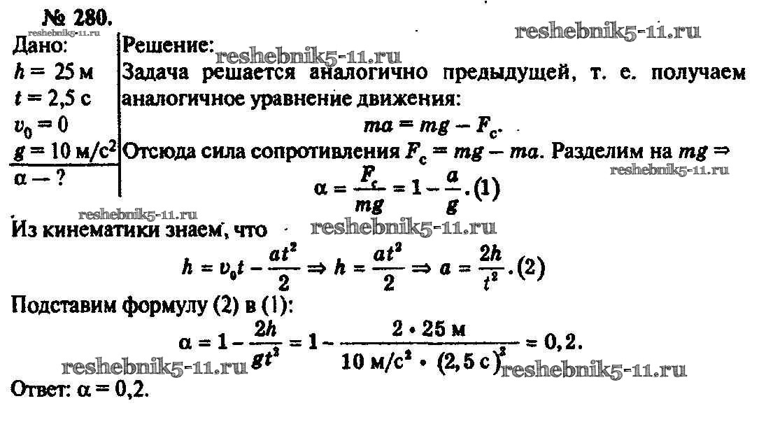 Готовая домашняя работа с ответами по Физике за 10, 11 класс Рымкевич Задачник УМК Дрофа 2013 ФГОС - Задачи 280