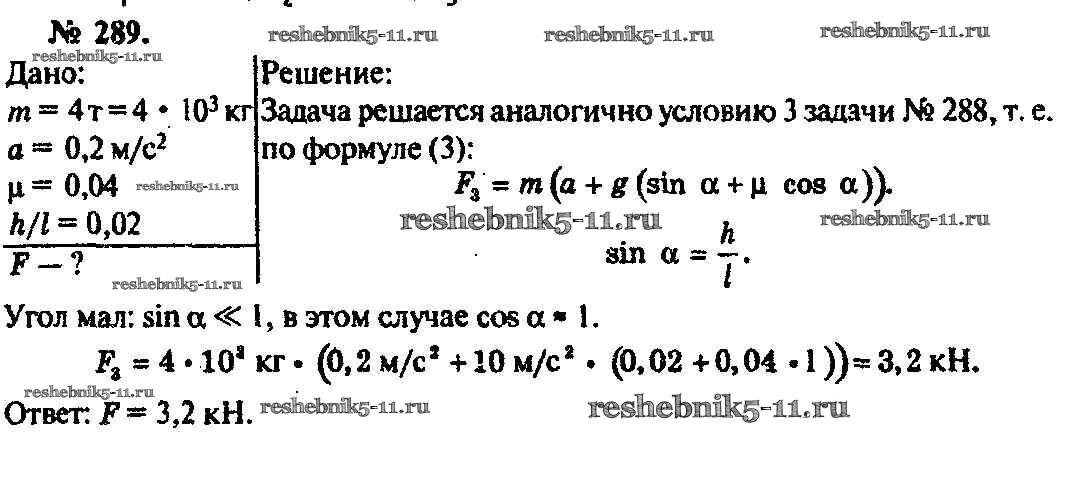 Готовая домашняя работа с ответами по Физике за 10, 11 класс Рымкевич Задачник УМК Дрофа 2013 ФГОС - Задачи 289