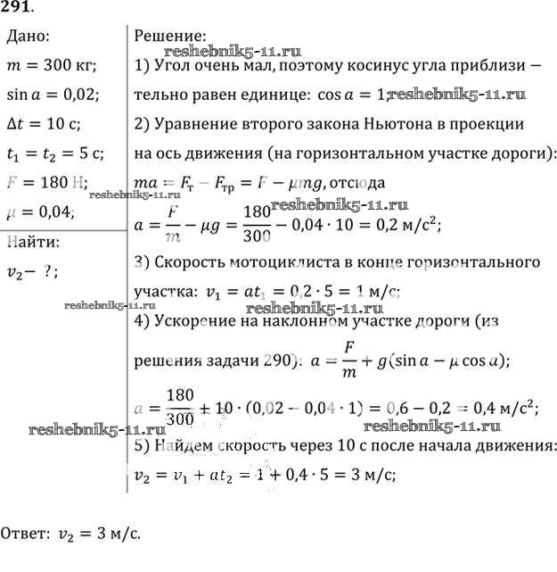 Готовая домашняя работа с ответами по Физике за 10, 11 класс Рымкевич Задачник УМК Дрофа 2013 ФГОС - Задачи 291