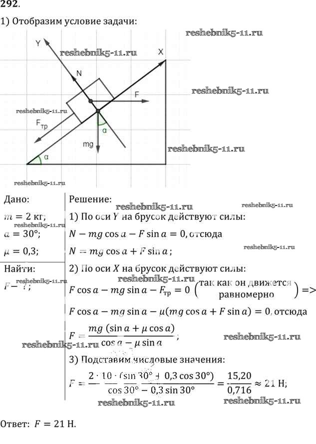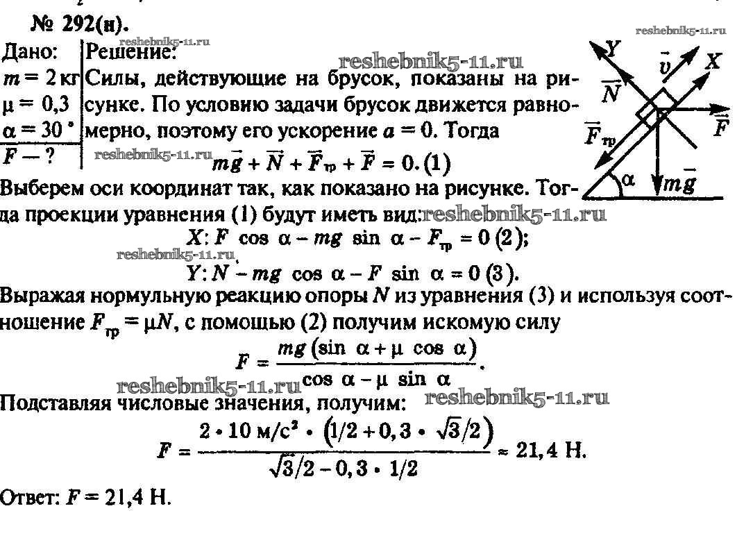 Готовая домашняя работа с ответами по Физике за 10, 11 класс Рымкевич Задачник УМК Дрофа 2013 ФГОС - Задачи 292