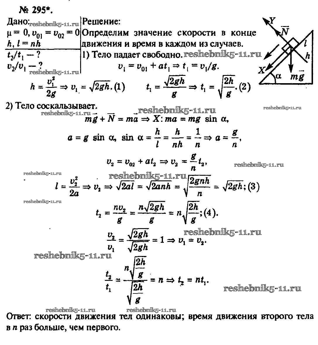 Готовая домашняя работа с ответами по Физике за 10, 11 класс Рымкевич Задачник УМК Дрофа 2013 ФГОС - Задачи 295