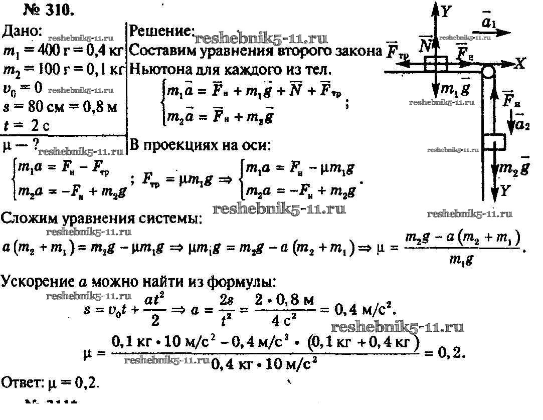 Готовая домашняя работа с ответами по Физике за 10, 11 класс Рымкевич Задачник УМК Дрофа 2013 ФГОС - Задачи 310