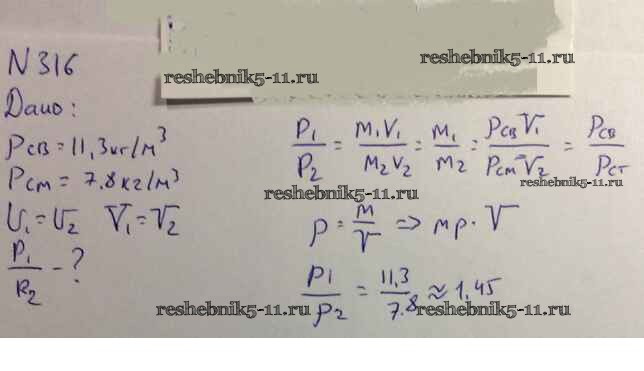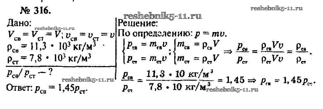 Готовая домашняя работа с ответами по Физике за 10, 11 класс Рымкевич Задачник УМК Дрофа 2013 ФГОС - Задачи 316