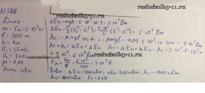 Готовая домашняя работа с ответами по Физике за 10, 11 класс Рымкевич Задачник УМК Дрофа 2013 ФГОС - Задачи 388