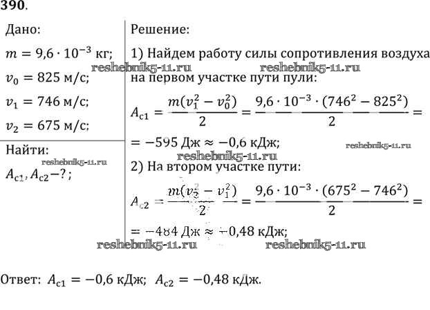 Готовая домашняя работа с ответами по Физике за 10, 11 класс Рымкевич Задачник УМК Дрофа 2013 ФГОС - Задачи 390