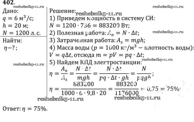 Готовая домашняя работа с ответами по Физике за 10, 11 класс Рымкевич Задачник УМК Дрофа 2013 ФГОС - Задачи 402