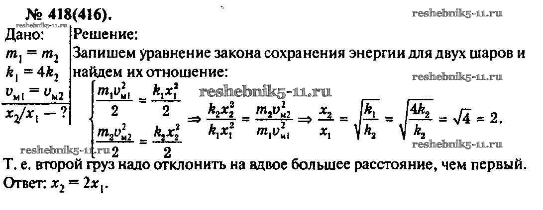 Готовая домашняя работа с ответами по Физике за 10, 11 класс Рымкевич Задачник УМК Дрофа 2013 ФГОС - Задачи 418