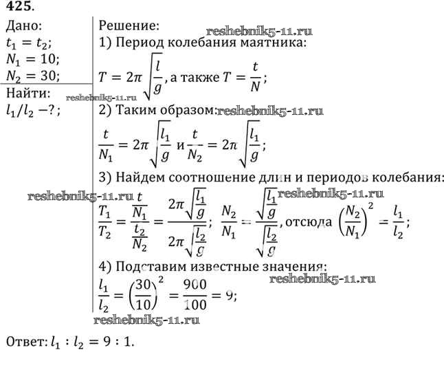 Готовая домашняя работа с ответами по Физике за 10, 11 класс Рымкевич Задачник УМК Дрофа 2013 ФГОС - Задачи 425