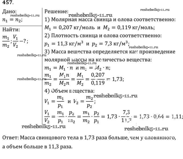 Готовая домашняя работа с ответами по Физике за 10, 11 класс Рымкевич Задачник УМК Дрофа 2013 ФГОС - Задачи 457