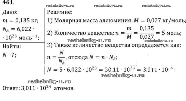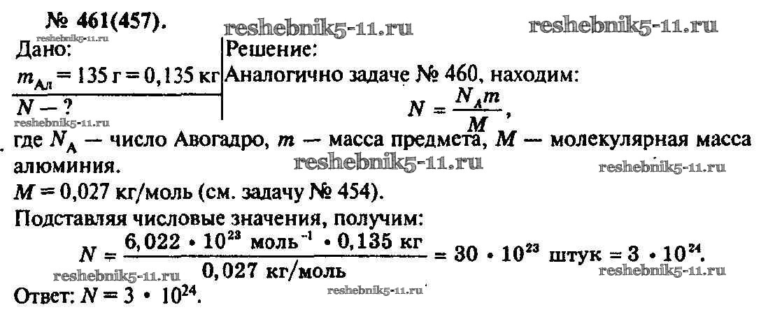 Готовая домашняя работа с ответами по Физике за 10, 11 класс Рымкевич Задачник УМК Дрофа 2013 ФГОС - Задачи 461