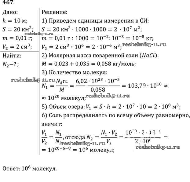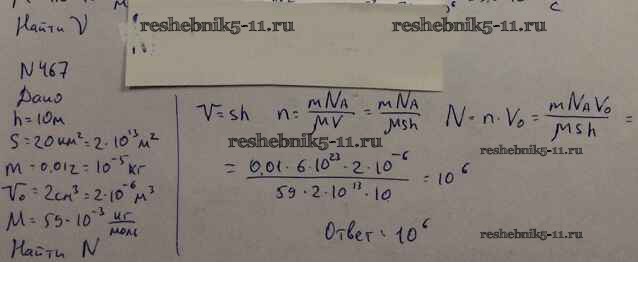 Готовая домашняя работа с ответами по Физике за 10, 11 класс Рымкевич Задачник УМК Дрофа 2013 ФГОС - Задачи 467