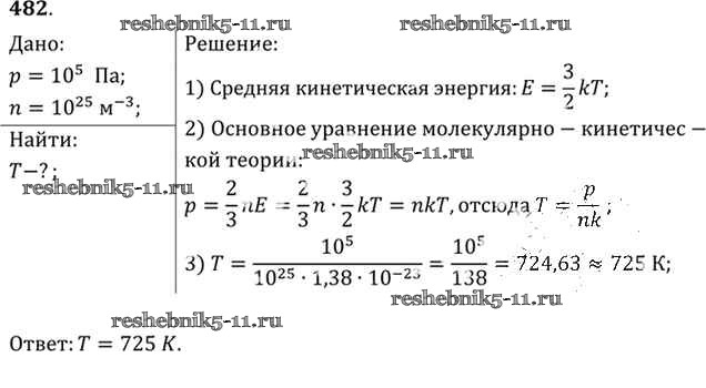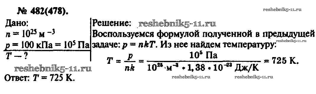 Готовая домашняя работа с ответами по Физике за 10, 11 класс Рымкевич Задачник УМК Дрофа 2013 ФГОС - Задачи 482