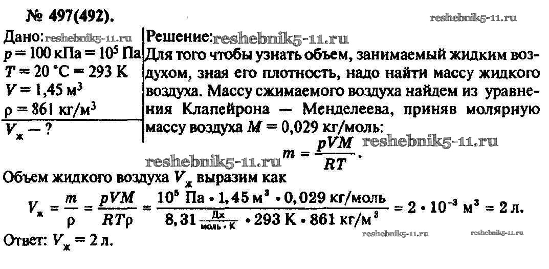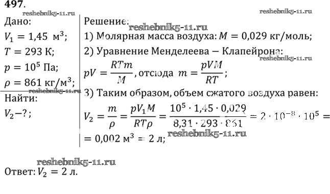 Готовая домашняя работа с ответами по Физике за 10, 11 класс Рымкевич Задачник УМК Дрофа 2013 ФГОС - Задачи 497