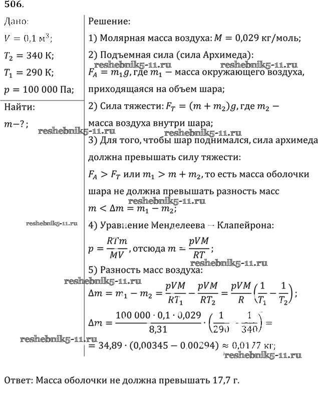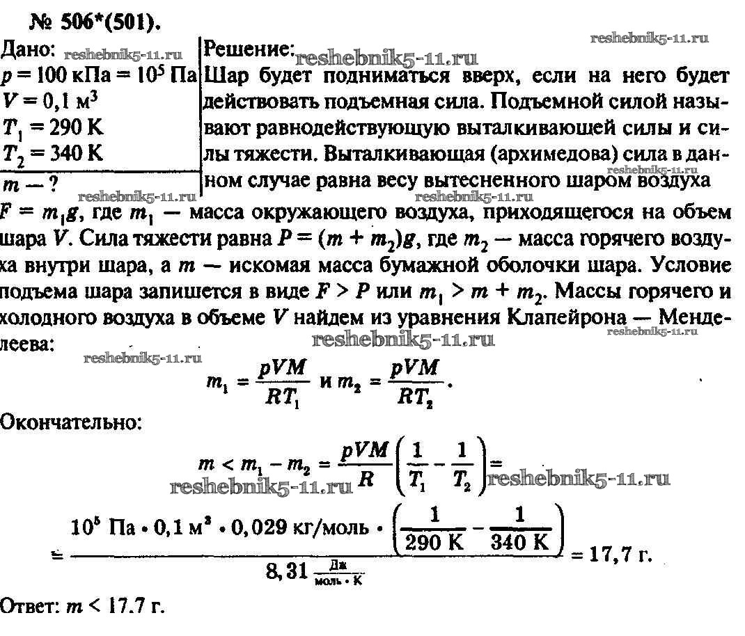 Готовая домашняя работа с ответами по Физике за 10, 11 класс Рымкевич Задачник УМК Дрофа 2013 ФГОС - Задачи 506