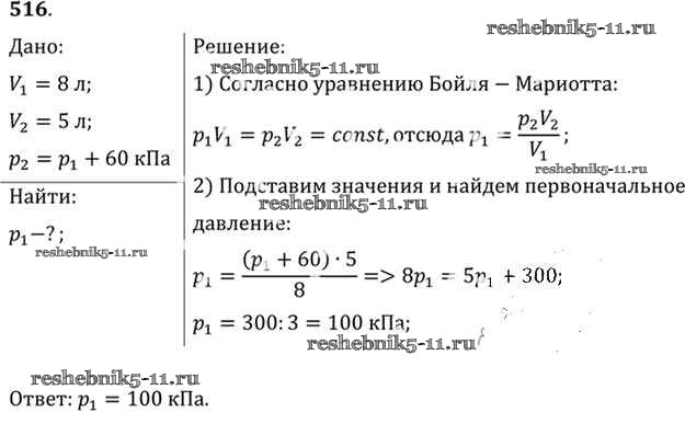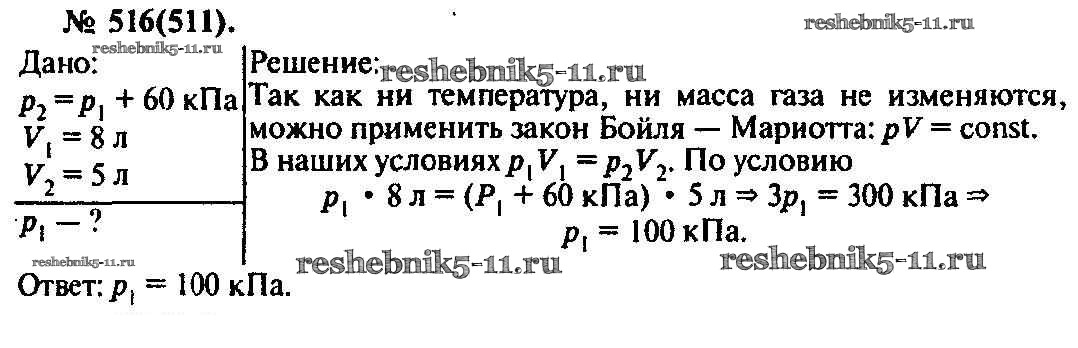 Готовая домашняя работа с ответами по Физике за 10, 11 класс Рымкевич Задачник УМК Дрофа 2013 ФГОС - Задачи 516