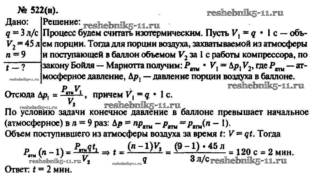Готовая домашняя работа с ответами по Физике за 10, 11 класс Рымкевич Задачник УМК Дрофа 2013 ФГОС - Задачи 522