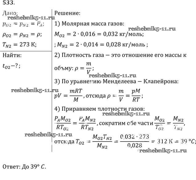 Готовая домашняя работа с ответами по Физике за 10, 11 класс Рымкевич Задачник УМК Дрофа 2013 ФГОС - Задачи 533