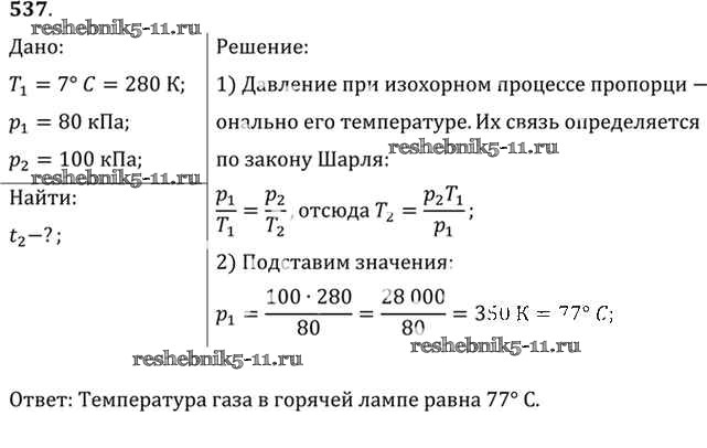 Готовая домашняя работа с ответами по Физике за 10, 11 класс Рымкевич Задачник УМК Дрофа 2013 ФГОС - Задачи 537