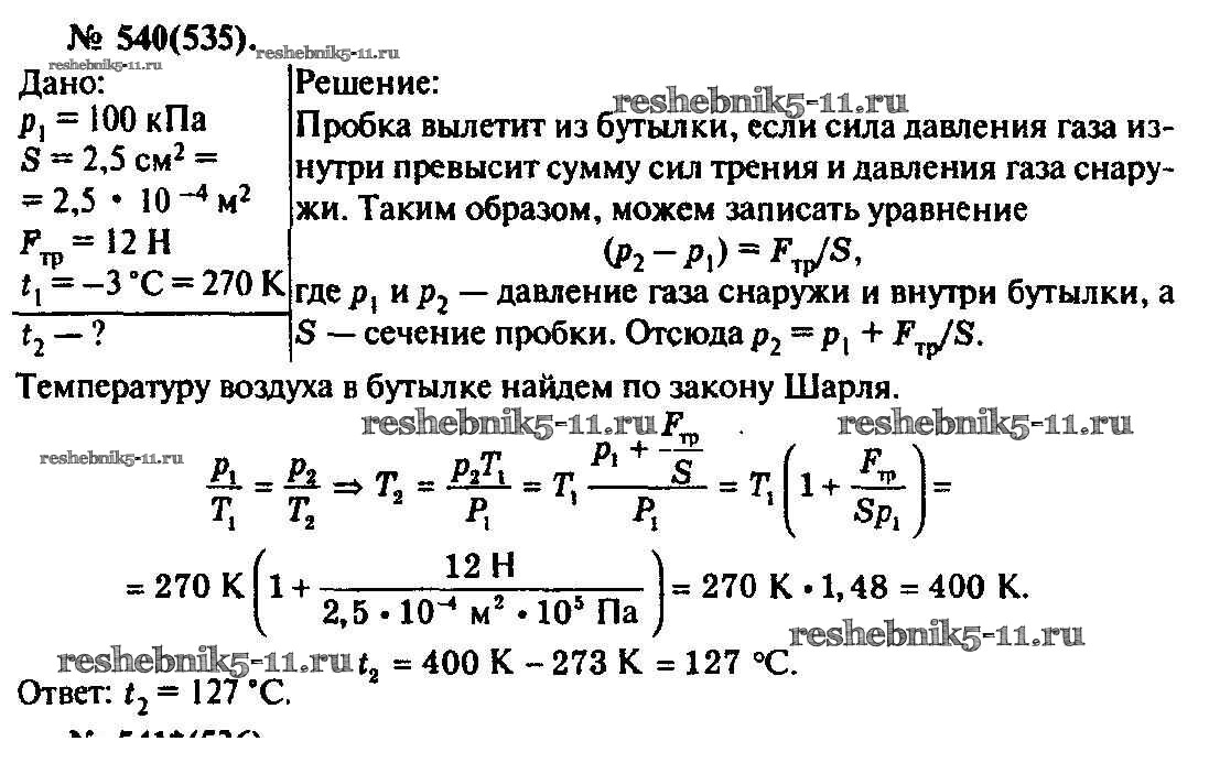 Готовая домашняя работа с ответами по Физике за 10, 11 класс Рымкевич Задачник УМК Дрофа 2013 ФГОС - Задачи 540